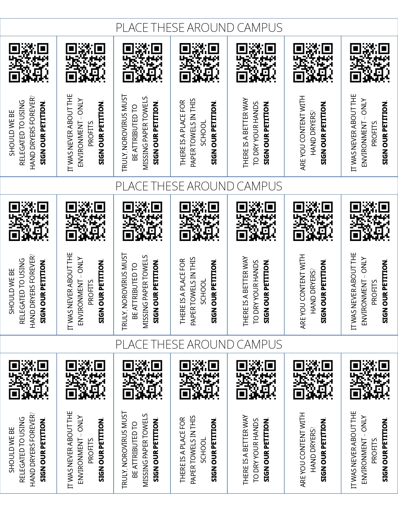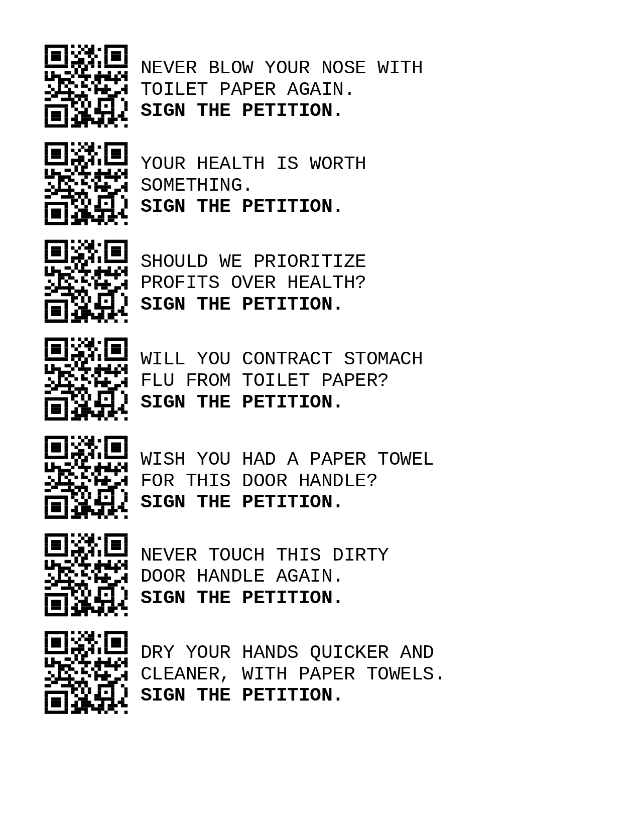 The option is valuable. Many of us, including non-signatories, support the return of paper towels. We ask you not to vandalize our work—you do not know what this website, these QR codes, and our petition mean to us.